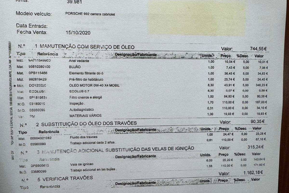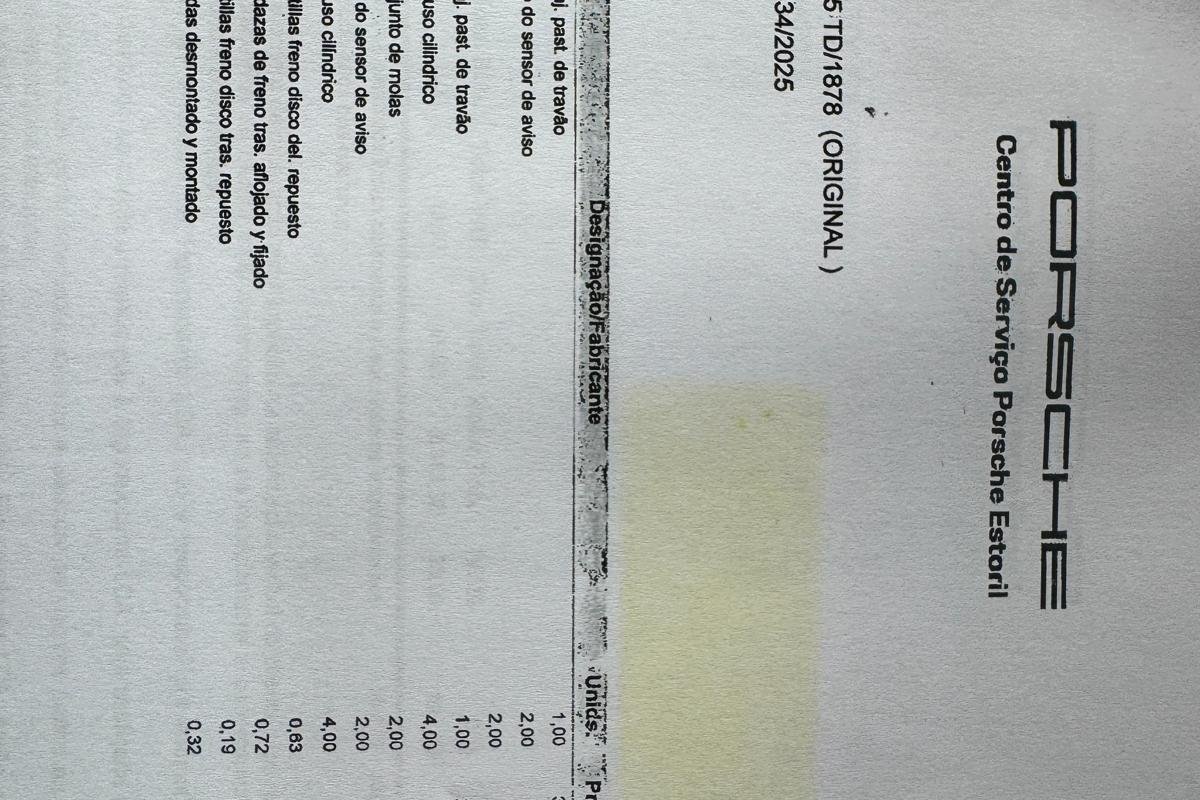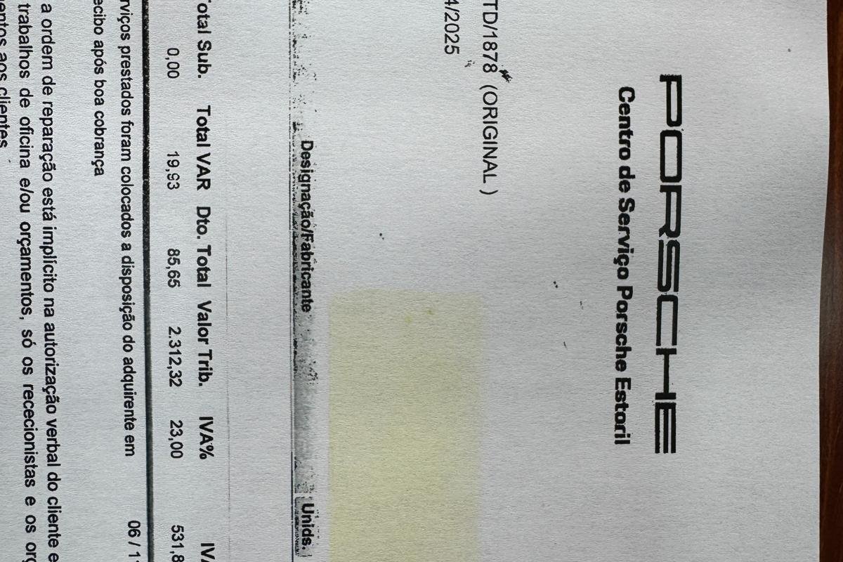 Revisão acabada de fazer na Porsche em Portugal