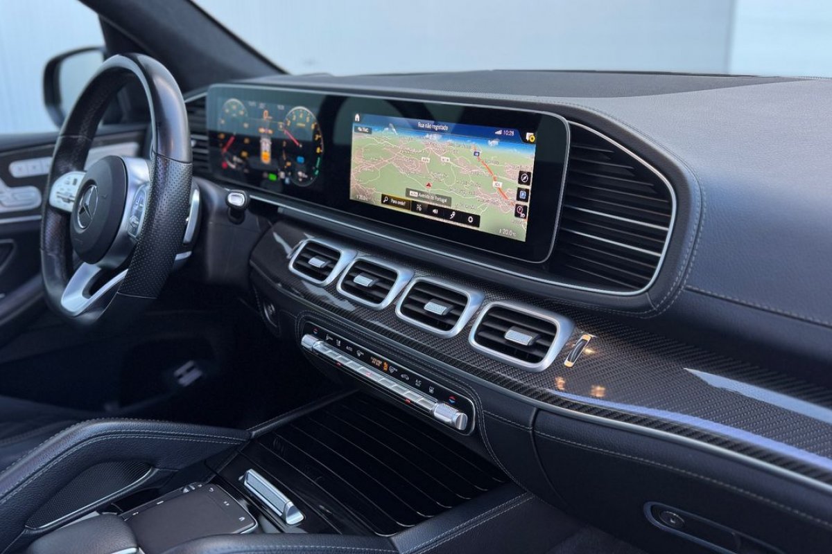 ACABAMENTOS INTERIORES AMG FIBRA DE CARBONO, AR CONDICIONADO AUTOMATICO THERMOTRONIC, ASSISTENTE DE MANOBRA DE REBOQUE, BANCOS TRASEIROS AQUECIDOS, COBERTURA DA BAGAGEIRA INCLUINDO A REDE DE SEGURANÇA EASY-PACK, ENTRADA DE 230V NA ZONA TRASEIRA, ESTOFOS EM PELE COMFORT, GANCHO DE REBOQUE COM ESTABILIZAÇAO ESP, HEAD UP DISPLAY, JANTES LIGA LEVE 21 MULTIRAIOS COM PNEUS DIANTEIROS 275/45 R21 107Y E TRASEIROS 315/40 R21 111Y, PACK AIRMATIC, PACK DE ASSISTENCIA A CONDUÇAO PLUS, PACK INTEGRAÇAO DE SMARTPHONE, PACK PROTECÇAO DO VEICULO URBAN GUARD PLUS, PINTURA METALIZADA, REDE DE DIVISORIA PARA COMPARTIMENTO DA BAGAGEIRA E PROTECÇAO DOS OCUPANTES, SIDEBAGS TRASEIROS, SISTEMA HIDRO-PNEUMATICO DE FECHO DAS PORTAS, TABLIER EM PELE